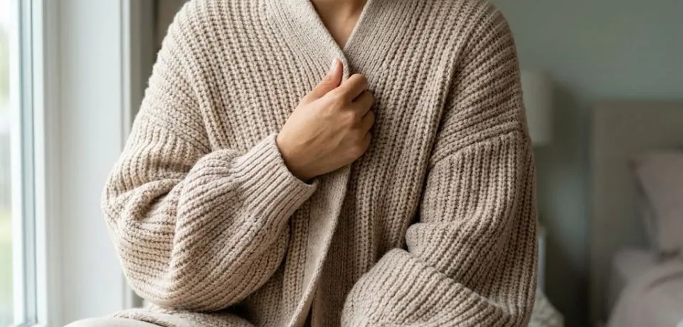 Heavy, itchy wool is often a no-go, but loose-knit cotton blends offer warmth without the prickle. Oversized cardigans or hoodies provide a cozy “safety bubble” that feels secure and relaxed for both parents and kids.