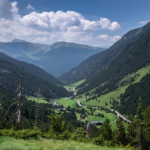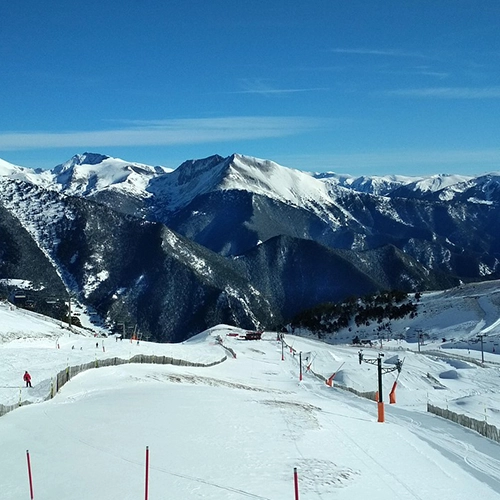 “Vallnord in Andorra is a stunning mountain resort, featuring snow-capped peaks, rugged slopes, and scenic trails surrounded by lush alpine landscapes.”